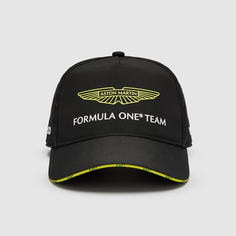 Acércate al equipo con la gorra oficial del equipo 2024. Disponible en tres opciones de color, la gorra del equipo 2024 viene con paneles traseros acolchados inspirados en los autos de Aston Martin y un diseño de perforación láser de precisión debajo de la visera, además de toda la marca actualizada del equipo Aston Martin Aramco Formula One® y de los patrocinadores.